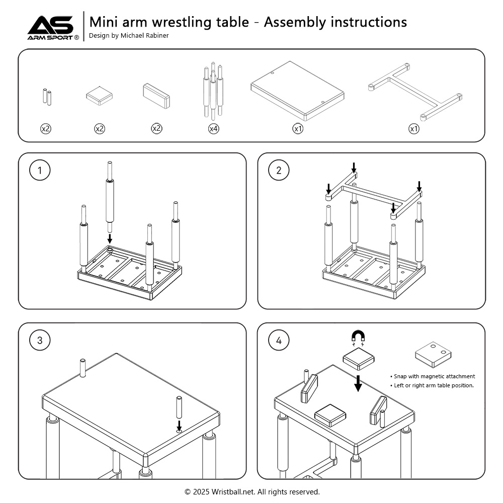 Bring the excitement of the arm wrestling arena to your home or office with the Mini Arm Wrestling Table – 1:10 Scale DIY Assembly Kit. Designed as a build-it-yourself kit, this miniature table snaps together easily, giving you a fun and rewarding project. The kit features adjustable elbow pads, replicating the authentic setup of a professional arm wrestling table. it’s a must-have for fans of the sport. This miniature table is recommended for ages 14+, making it a safe and engaging kit for teens, adults, and collectors. Its realistic proportions, high-quality construction, and eye-catching design make it a perfect gift for arm wrestlers, coaches, or enthusiasts. Whether for display, desk décor, or tabletop demonstration, this miniature arm wrestling table brings fun, realism, and collectible value all in one package. Perfect Gift & Trophy for Arm Wrestlers: A unique collectible for athletes, coaches, and fans. Can also serve as a mini trophy or award for events, competitions, or friendly matches.